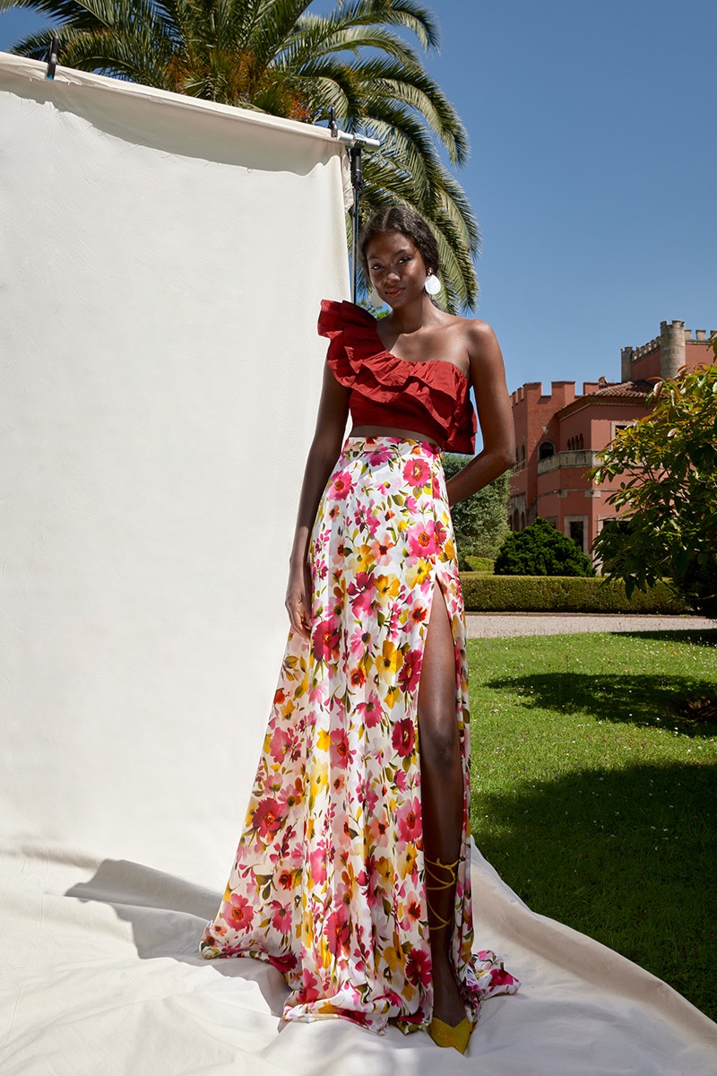 Espectacular top asimétrico confeccionado en tafeta de calidad en color burdeos. (...)