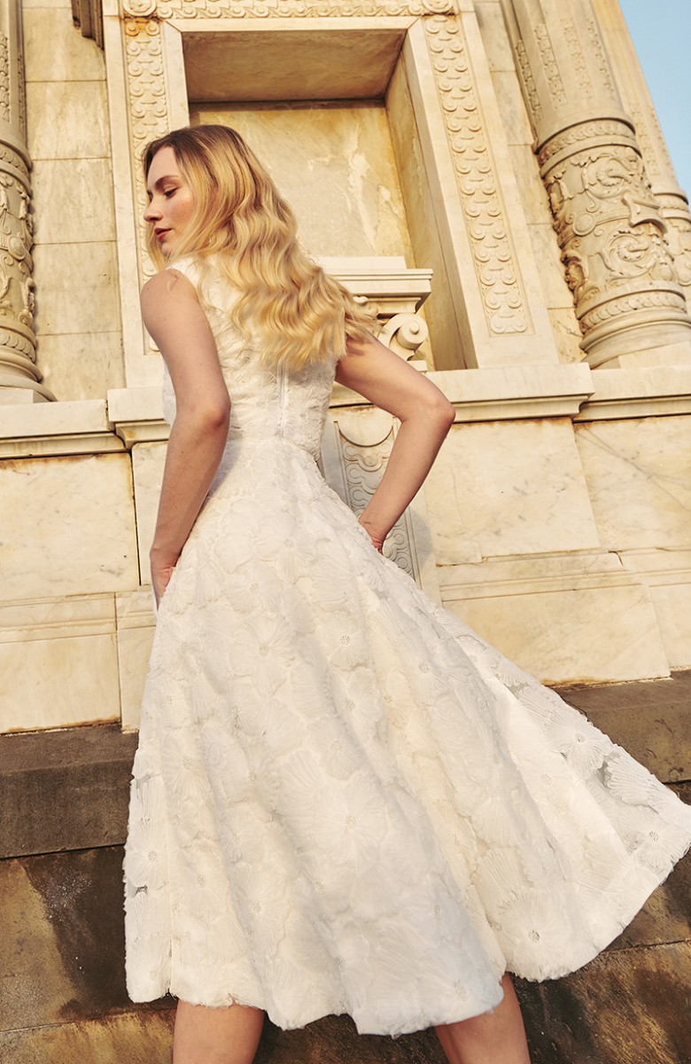 Precioso vestido midi confeccionado en un tejido bordado en tul blanco flores en relieve. (...)