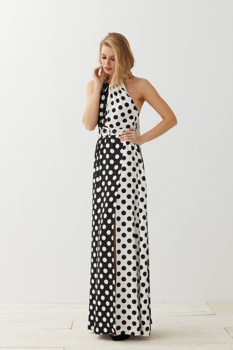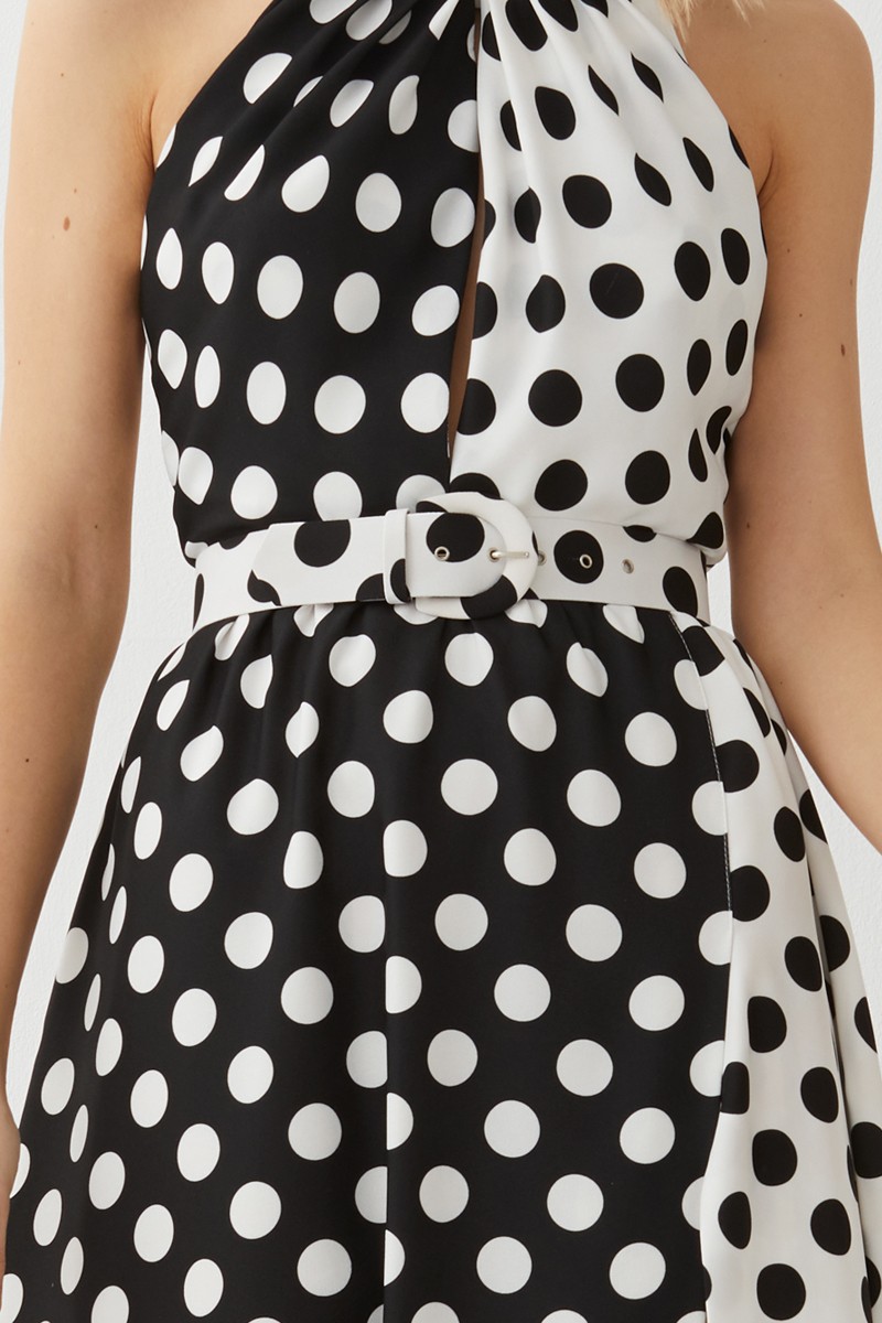 Precioso cinturón forrado en crepe en color blanco con lunares negros con hebilla en el centro y agujeros para ajustarlo a la cintura. (...)
