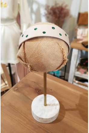 DIADEMA BEIGE ANCHA CON PIEDRAS VERDES ESMERALDA