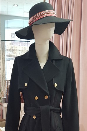 SOMBRERO NEGRO DE LANA CON CINTA DE PEDRERÍA ROJA