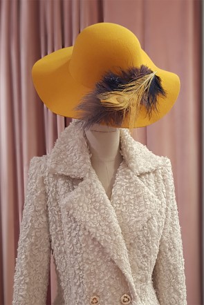 SOMBRERO MOSTAZA DE LANA CON PLUMAS