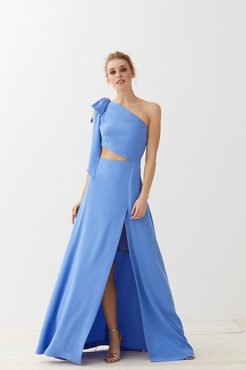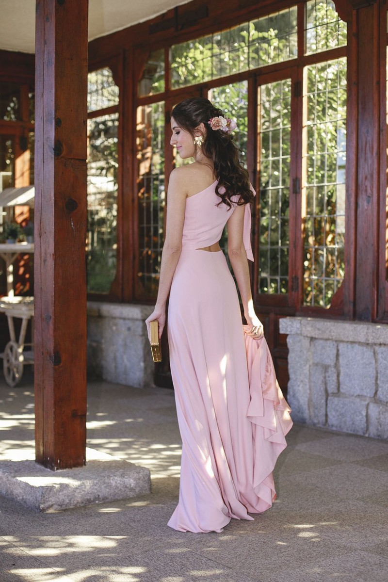 Precioso vestido largo en color rosa palo confeccionado en crepe de excelente calidad. Se compone por un bellísimo y elegante cuerpo de escote asimétrico que deja un (...)