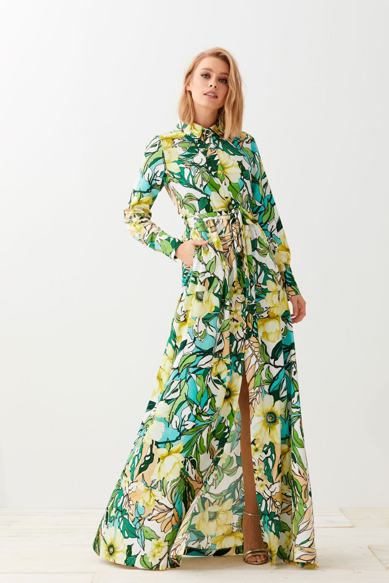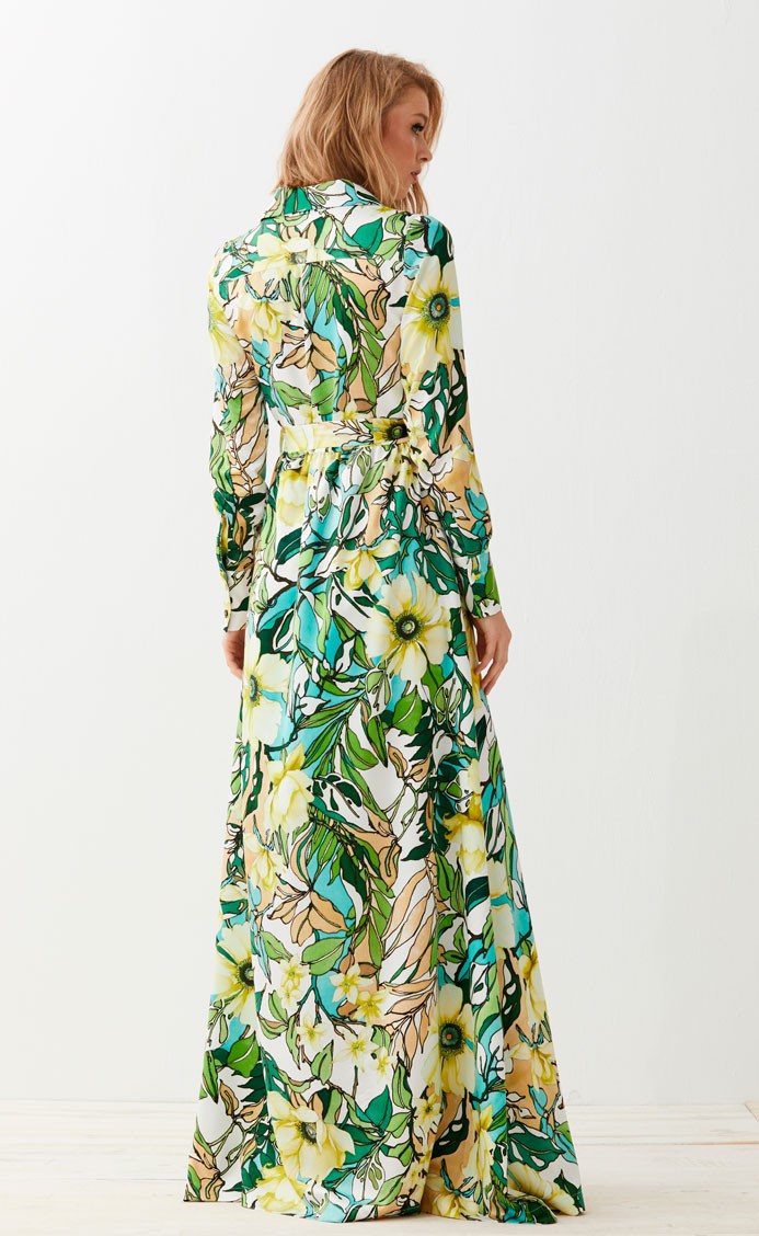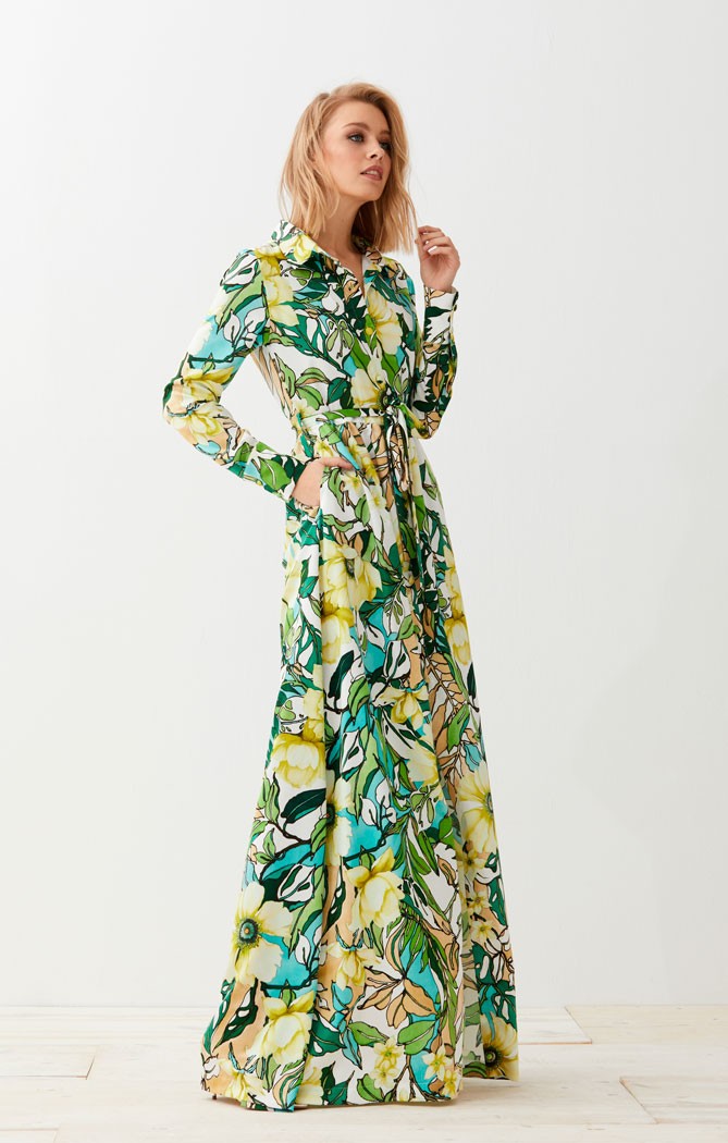 Vestido largo camisero de precioso estampado, con manga larga y abotonado por delante. (...)